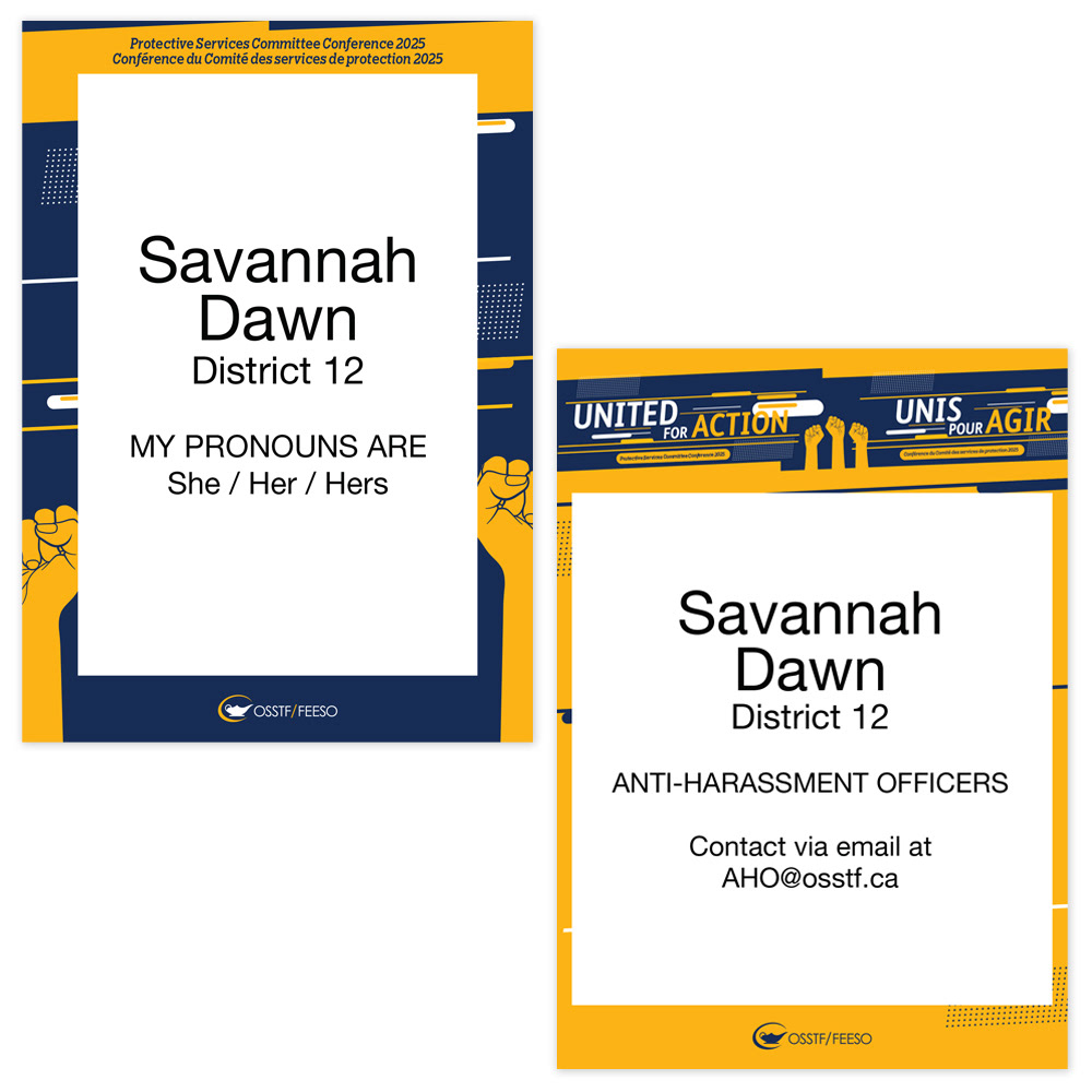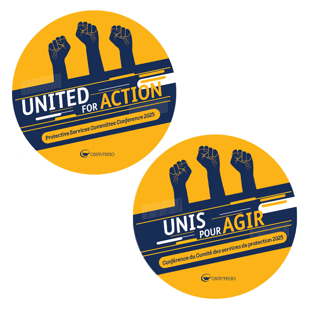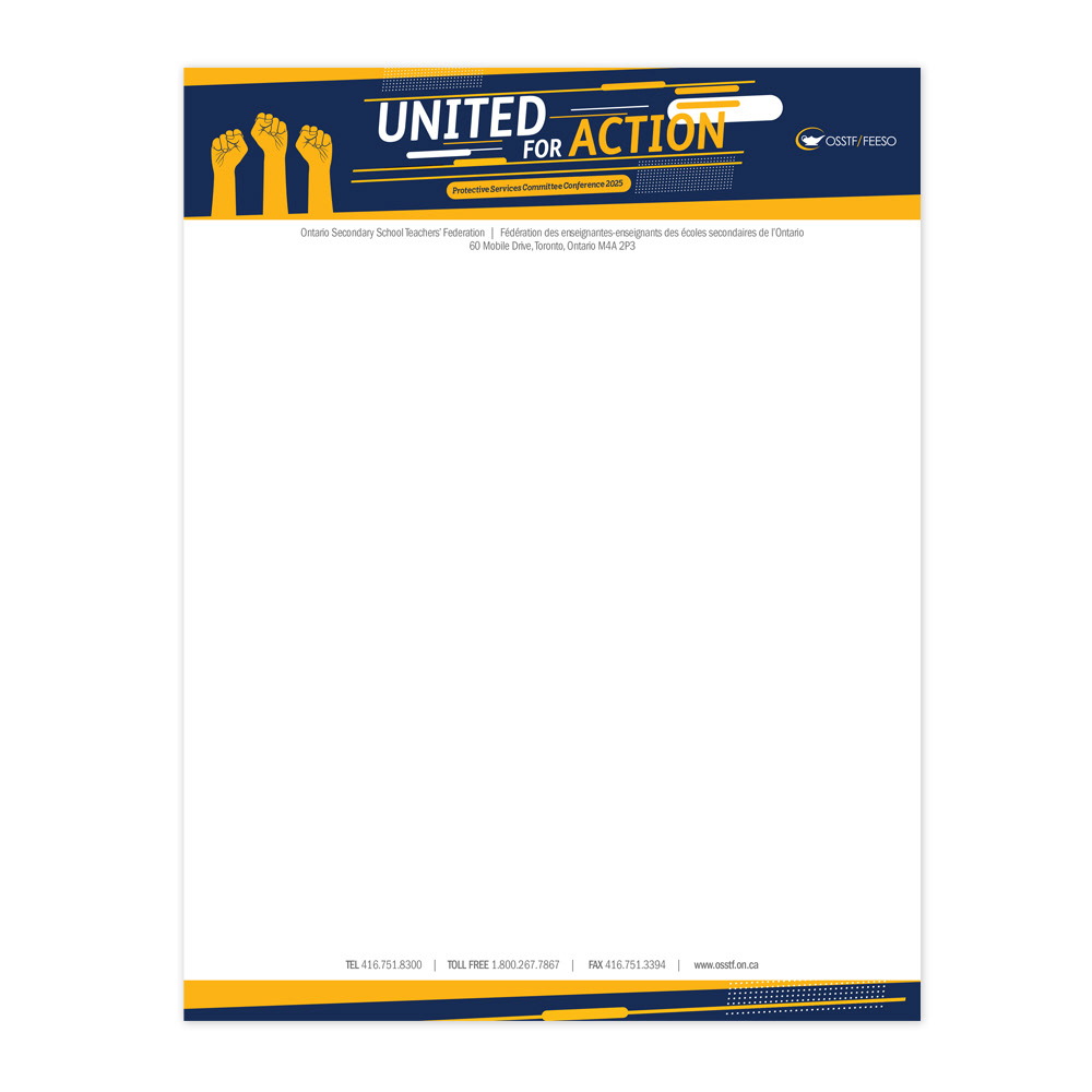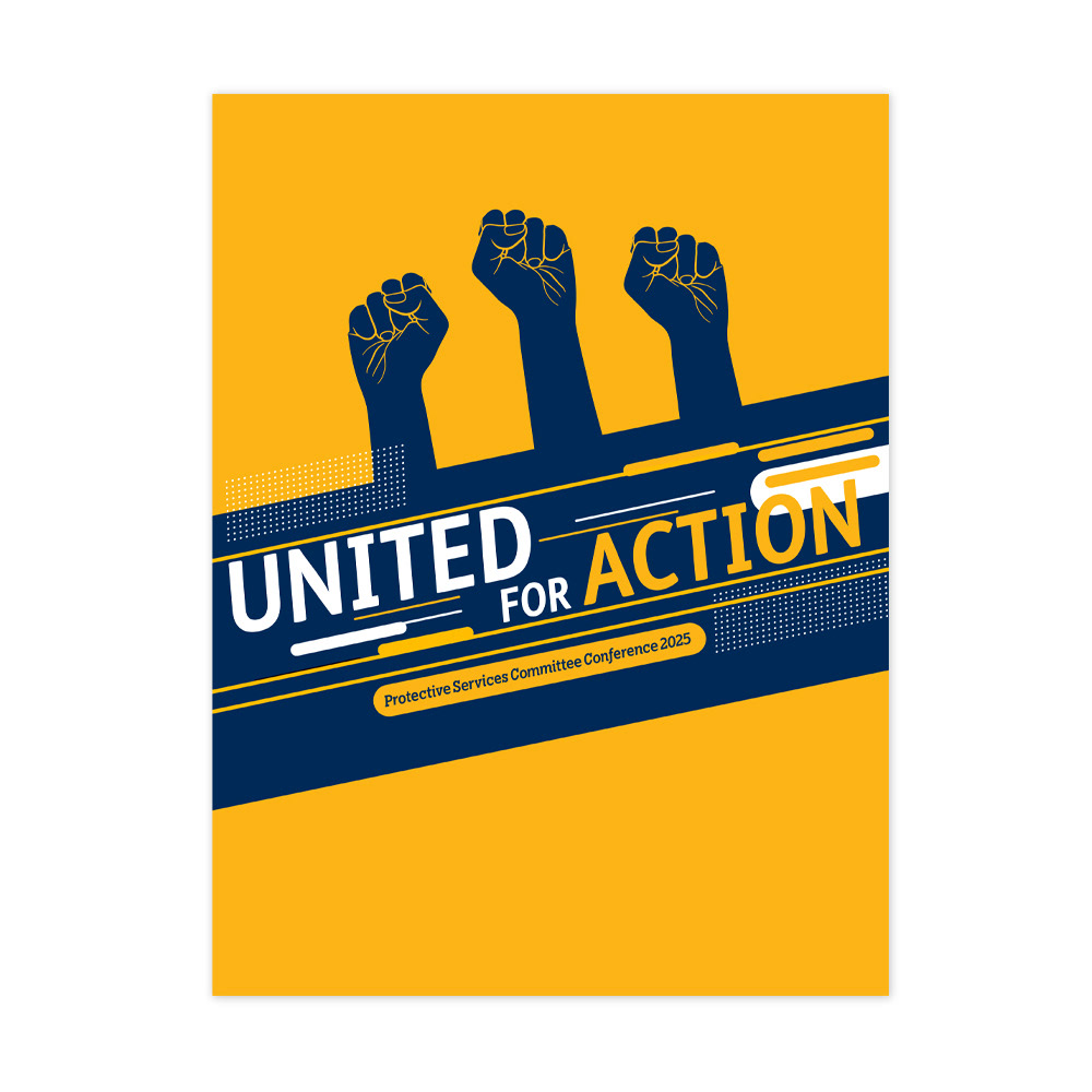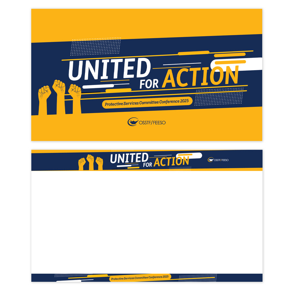 Event collateral for the Protective Services Conference for OSSTF/FEESO. The theme for the event was 'United For Action.'